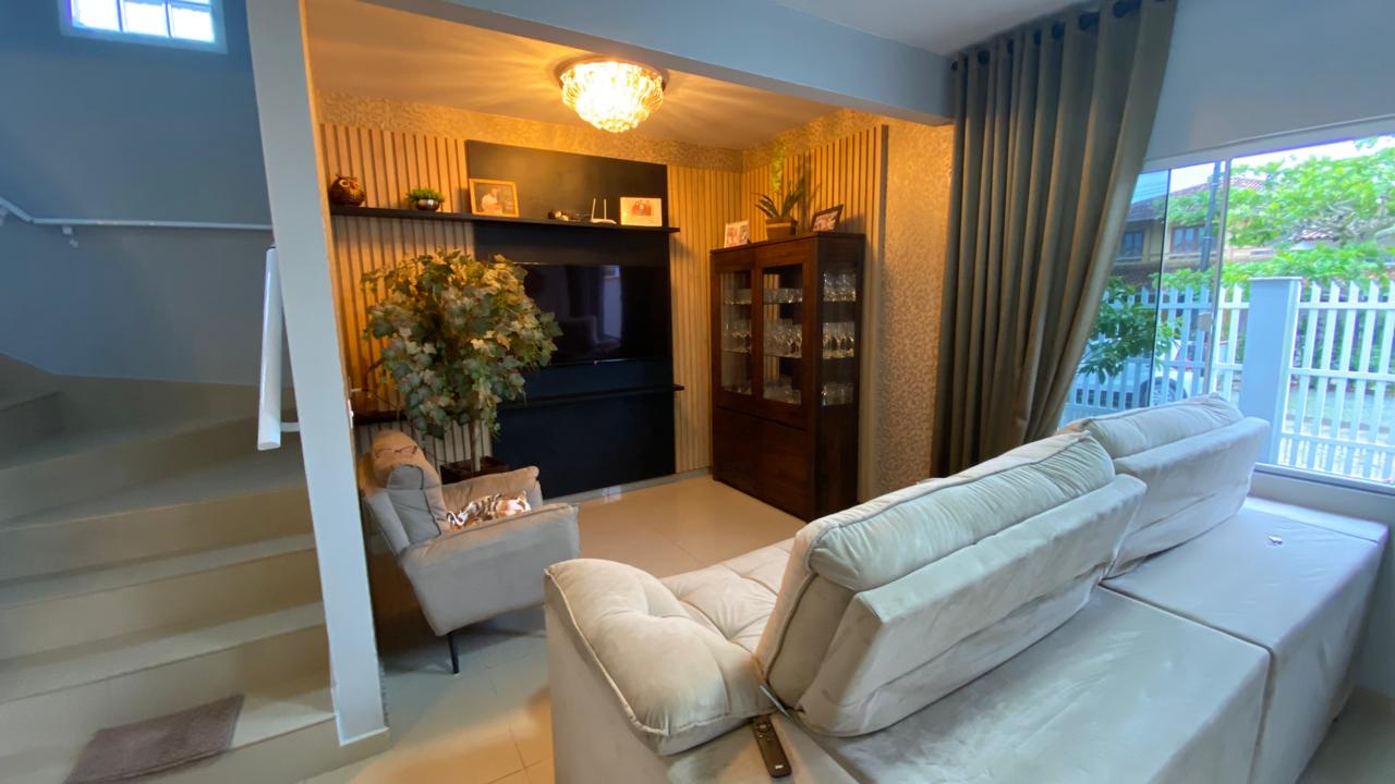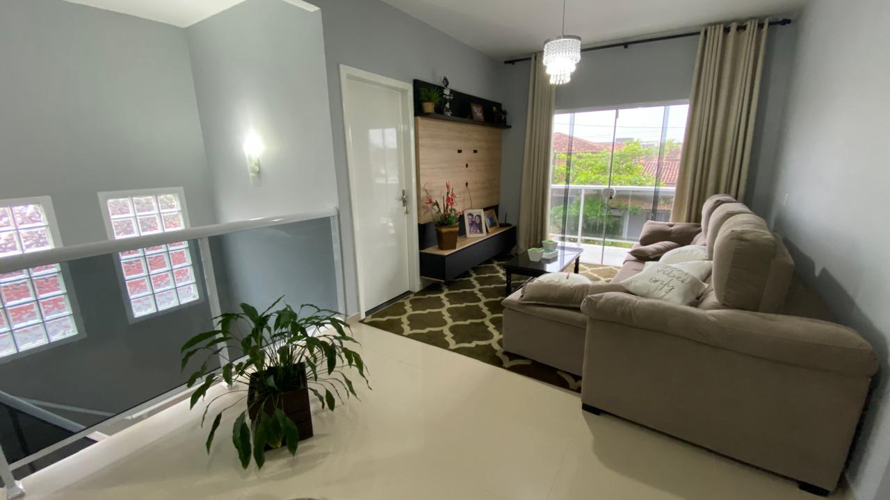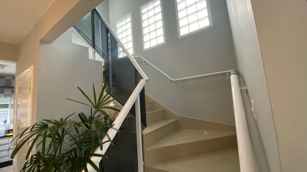 No piso superior 2 suítes, 1 quarto, 1 banheiro e sala espaçosa.