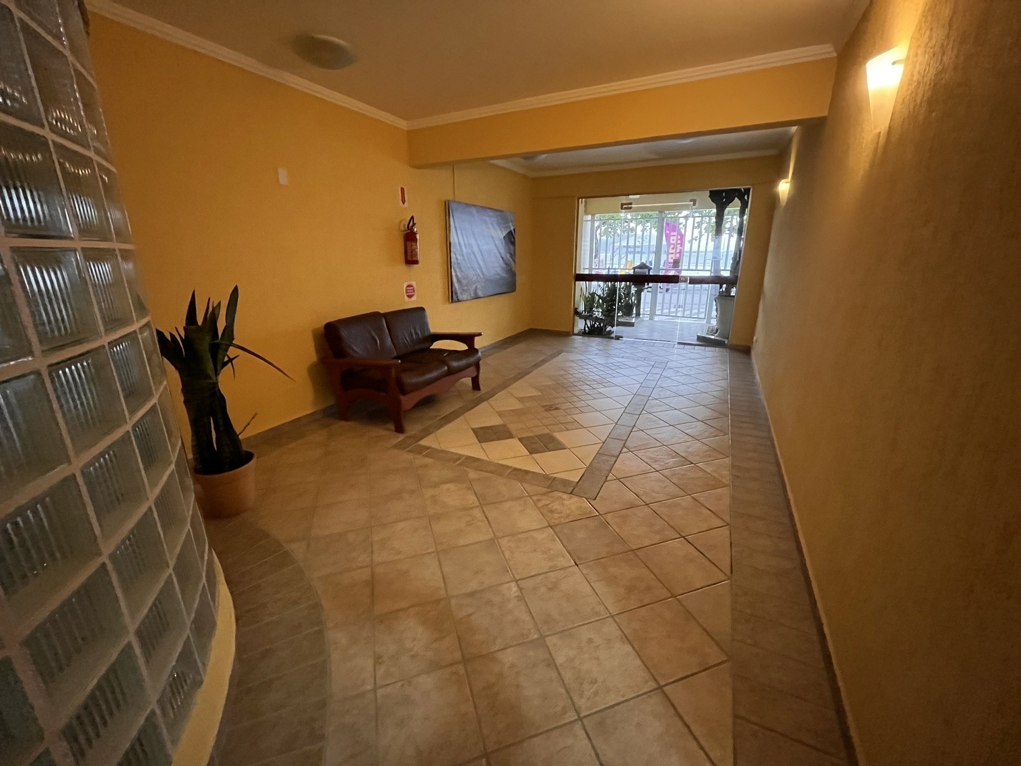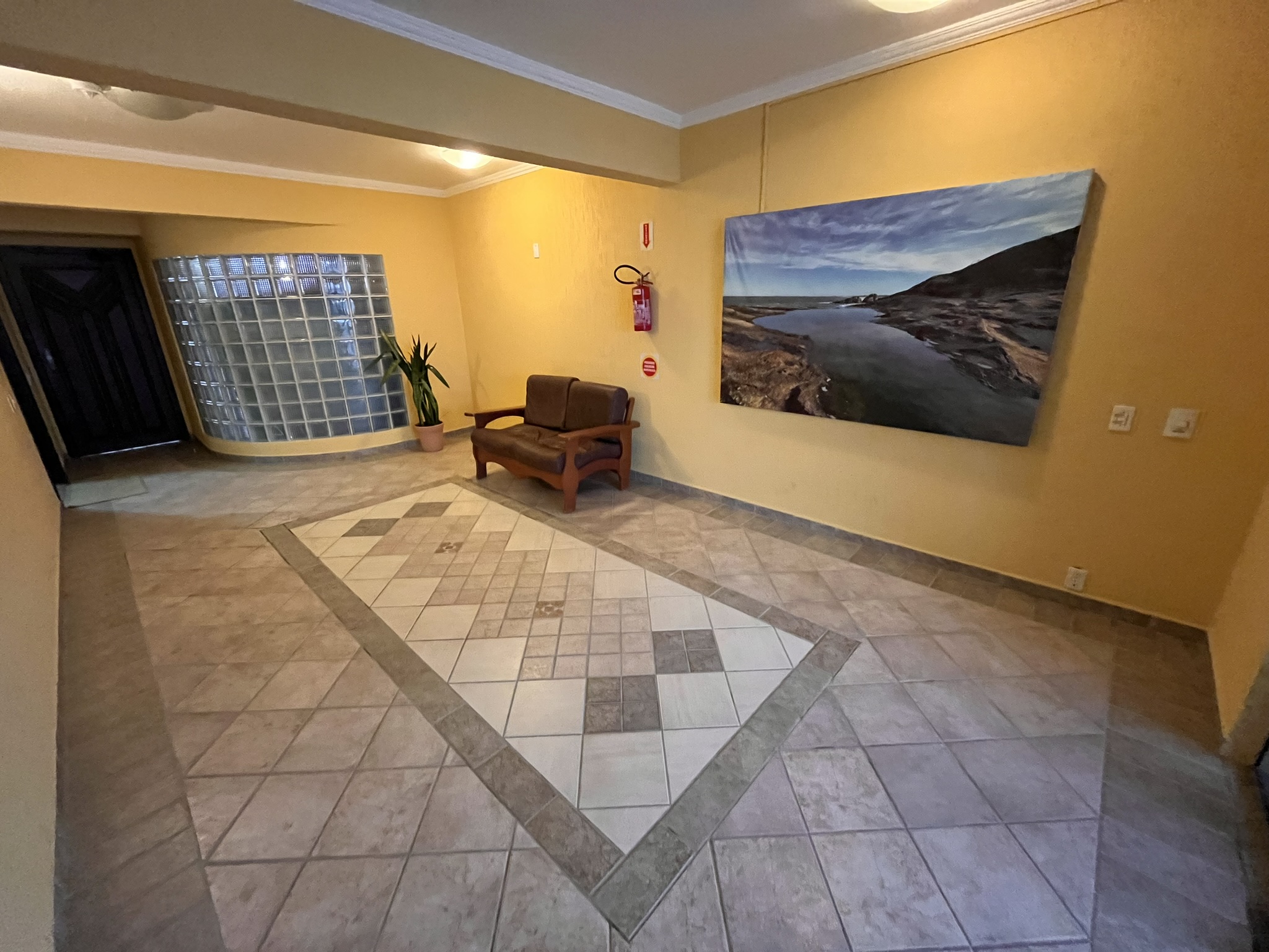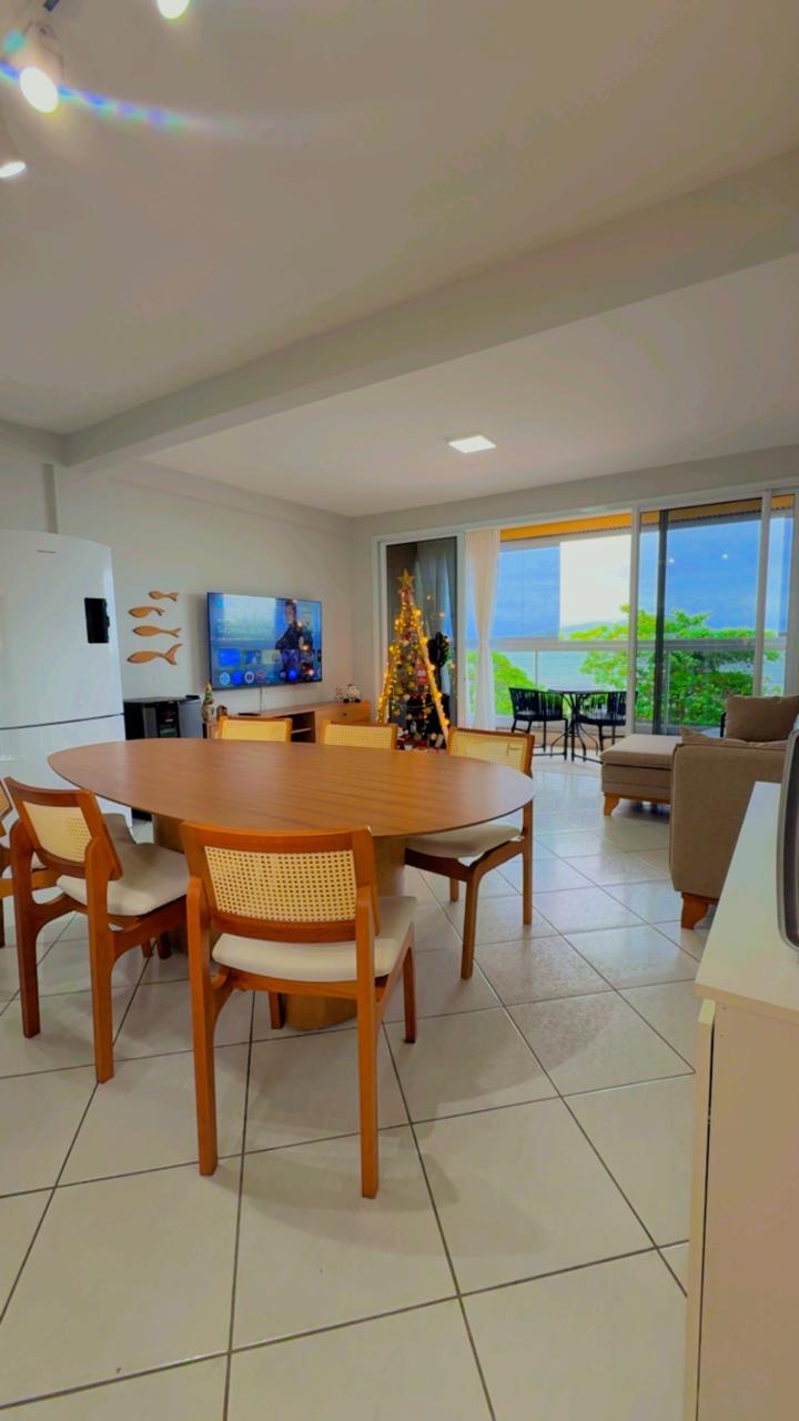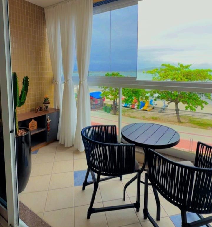 O Apartamento é super espaçoso e muito ventilado. Tem uma sacada ampla com vista fantástica para a praia da Enseada.