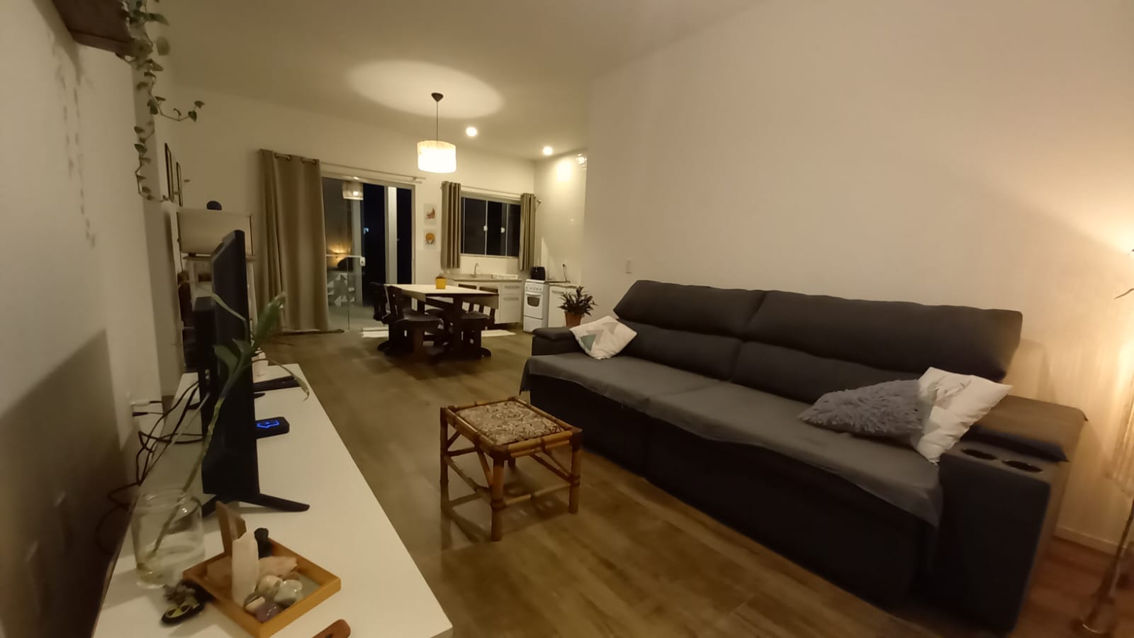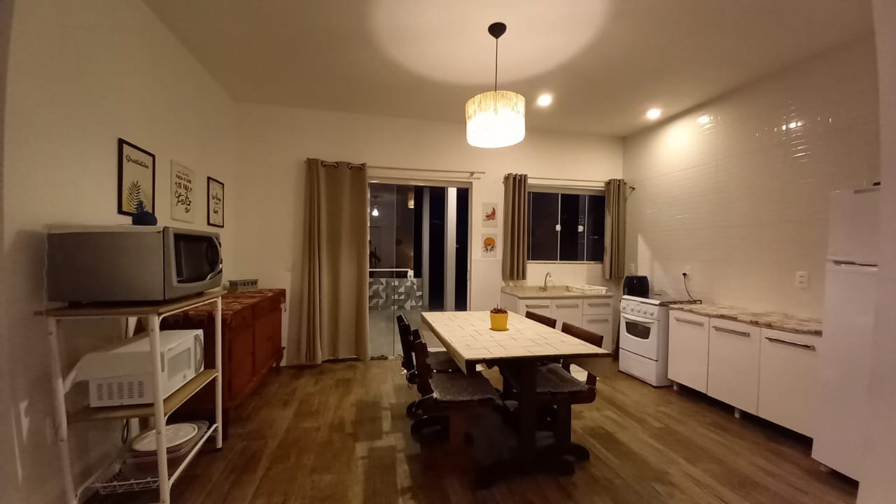 TV com antena digital, internet wi-fi, louças e utensílios para atender 7 pessoas.
