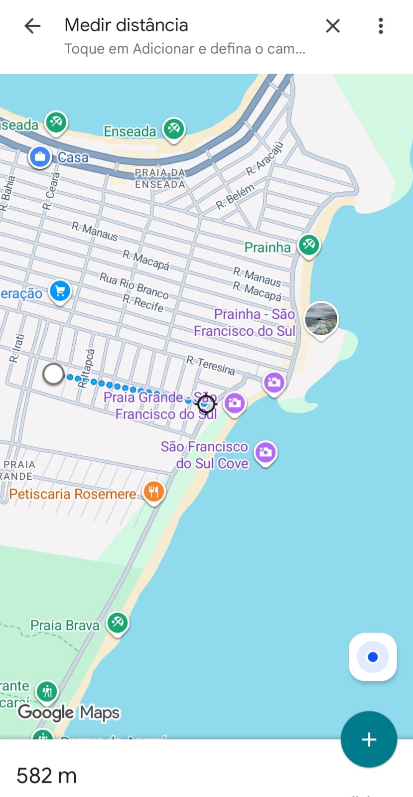 Distante 580m do mar da Enseada. Local tranquilo e seguro, próximo a mercado com açougue e padaria;