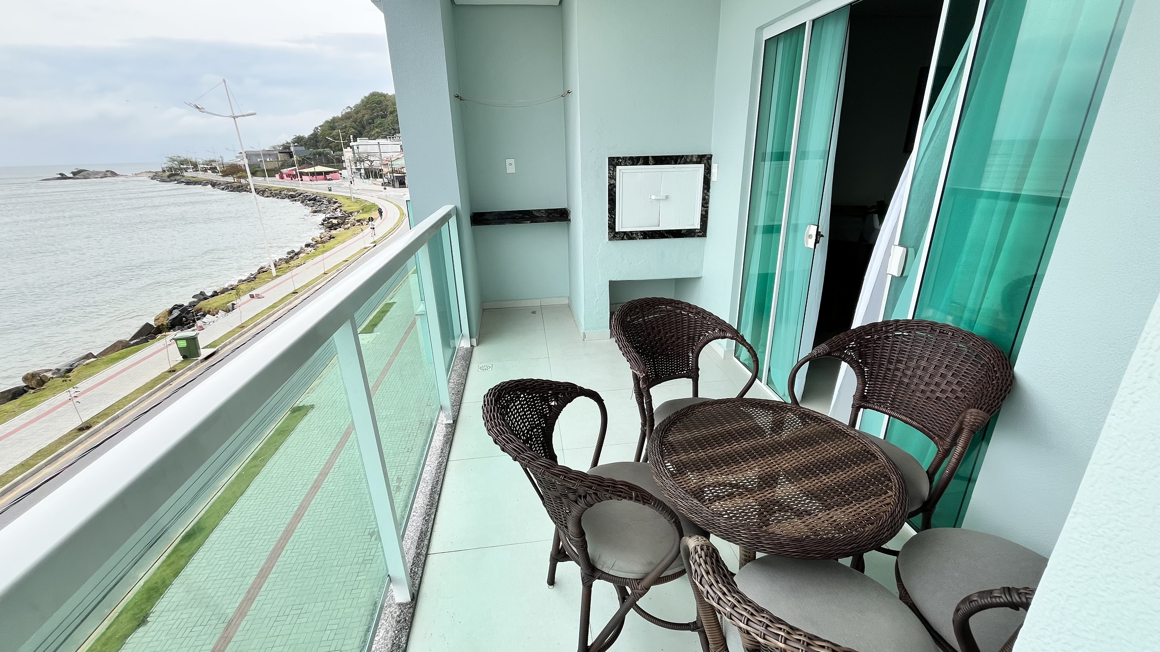 Ref. 1796.202: FRENTE PARA O MAR, 2o ANDAR - 3 dormitórios todos climatizados sendo: uma suíte com camas box de casal, um quarto com cama box de casal e o outro quarto com 2 beliches (4 camas de solteiro), sacada com churrasqueira e 2 vagas de garagem (vagas duplas para carros até 5m cada carro, sujeitos À manobras - se pick-up apenas 1 vaga)