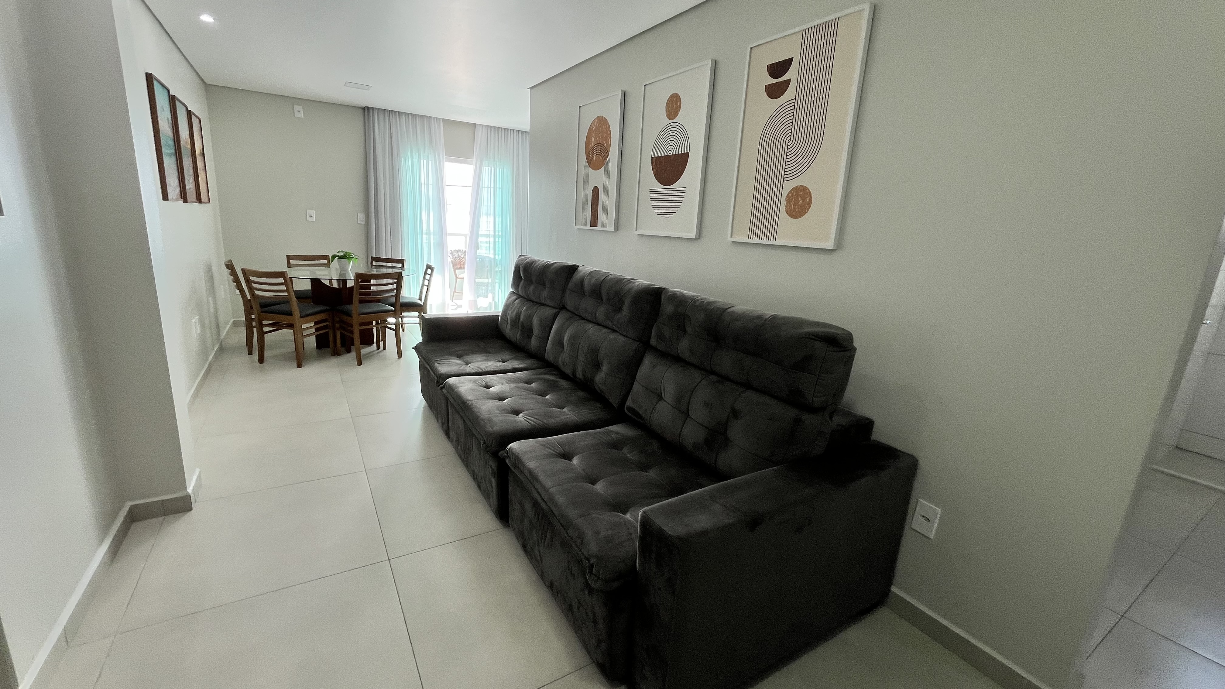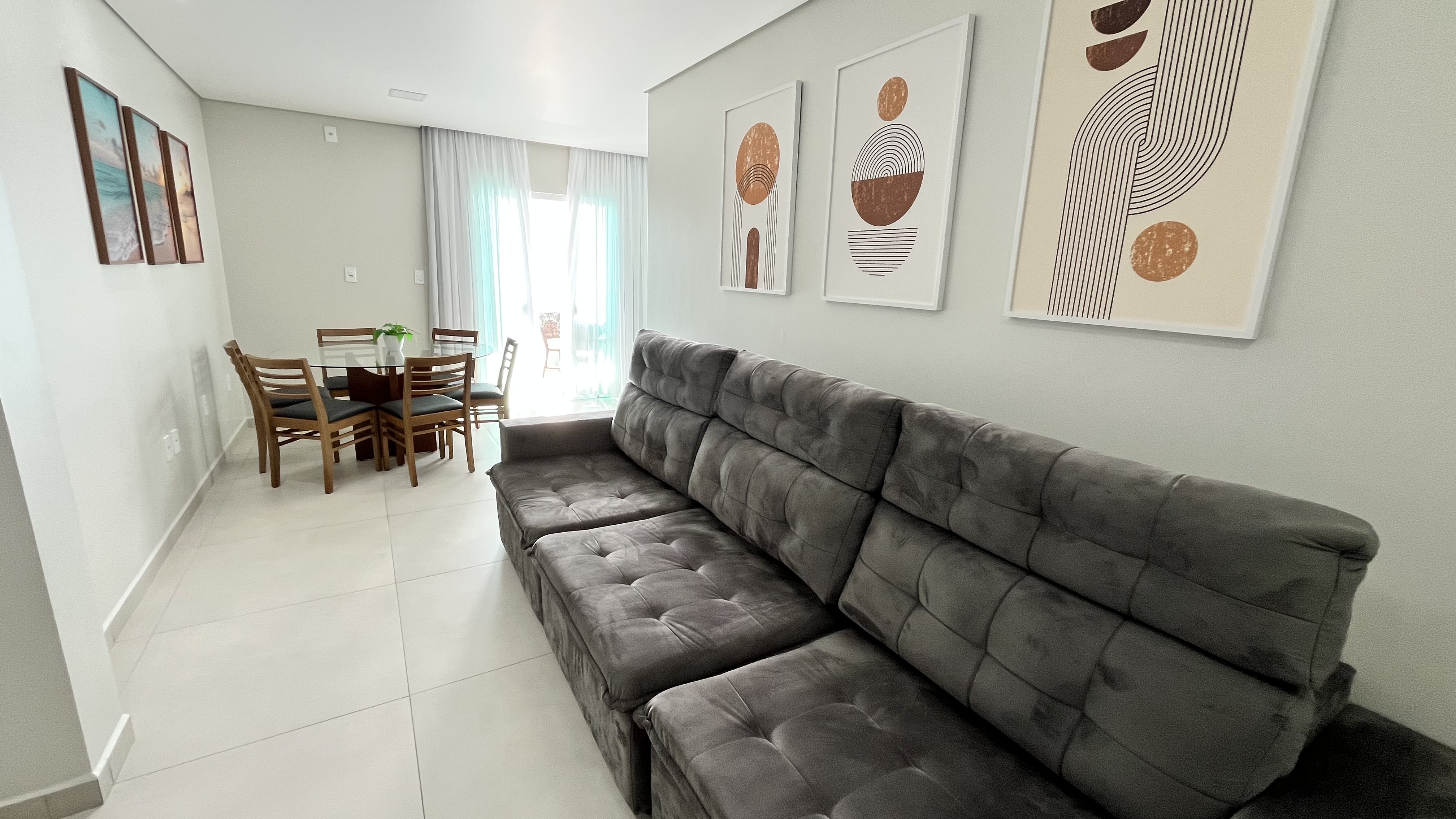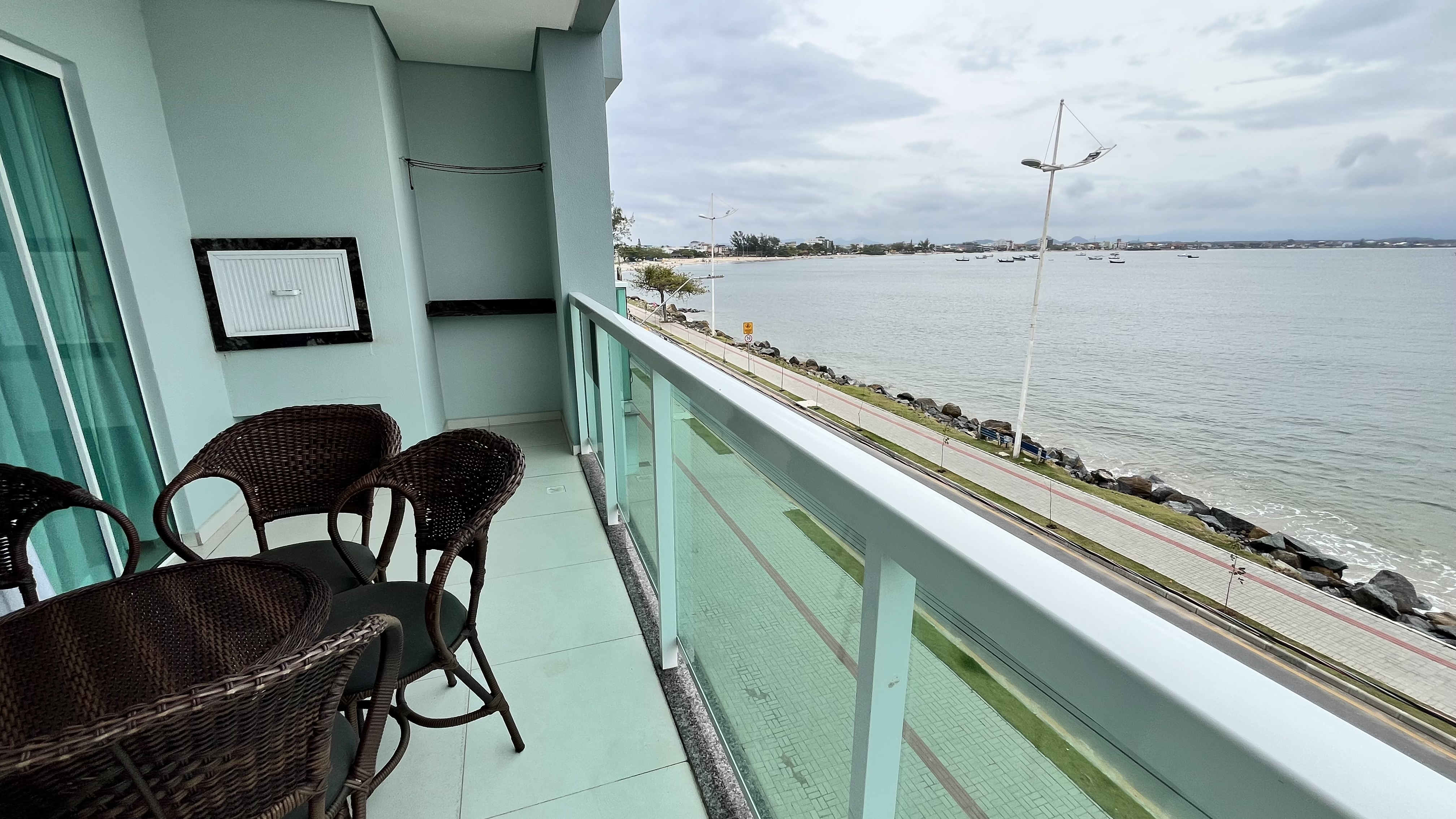 Ref. 1796.204: FRENTE PARA O MAR - SEGUNDO ANDAR, 3 dormitórios todos climatizados sendo uma suíte com camas box de casal, um quarto com cama box de casal e o outro quarto com 2 beliches (4 camas de solteiro), sacada com churrasqueira e 2 vagas de garagem total de 10m (se pickup 1 vaga)