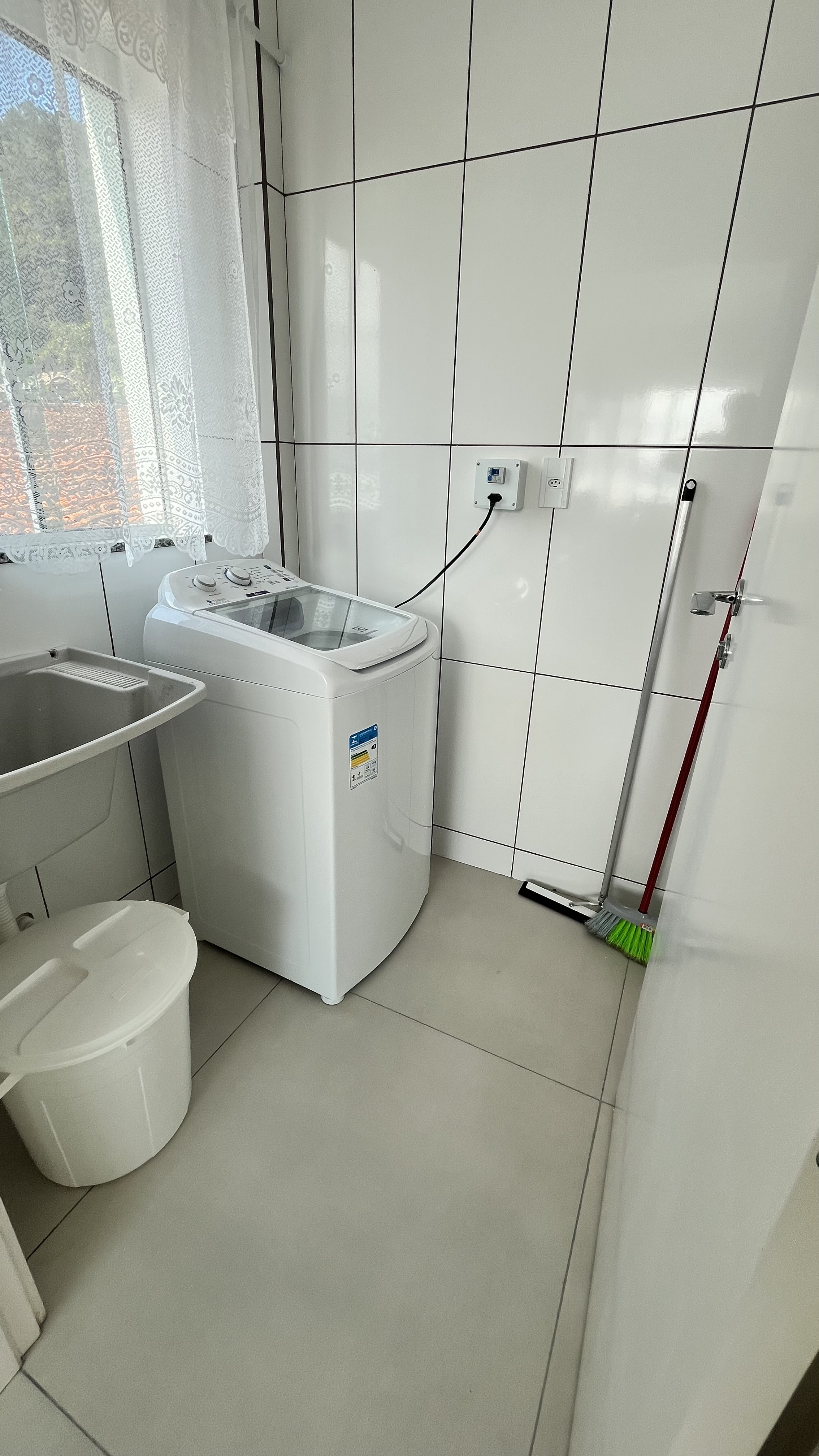 Lavanderia com máquina de lavar roupas;