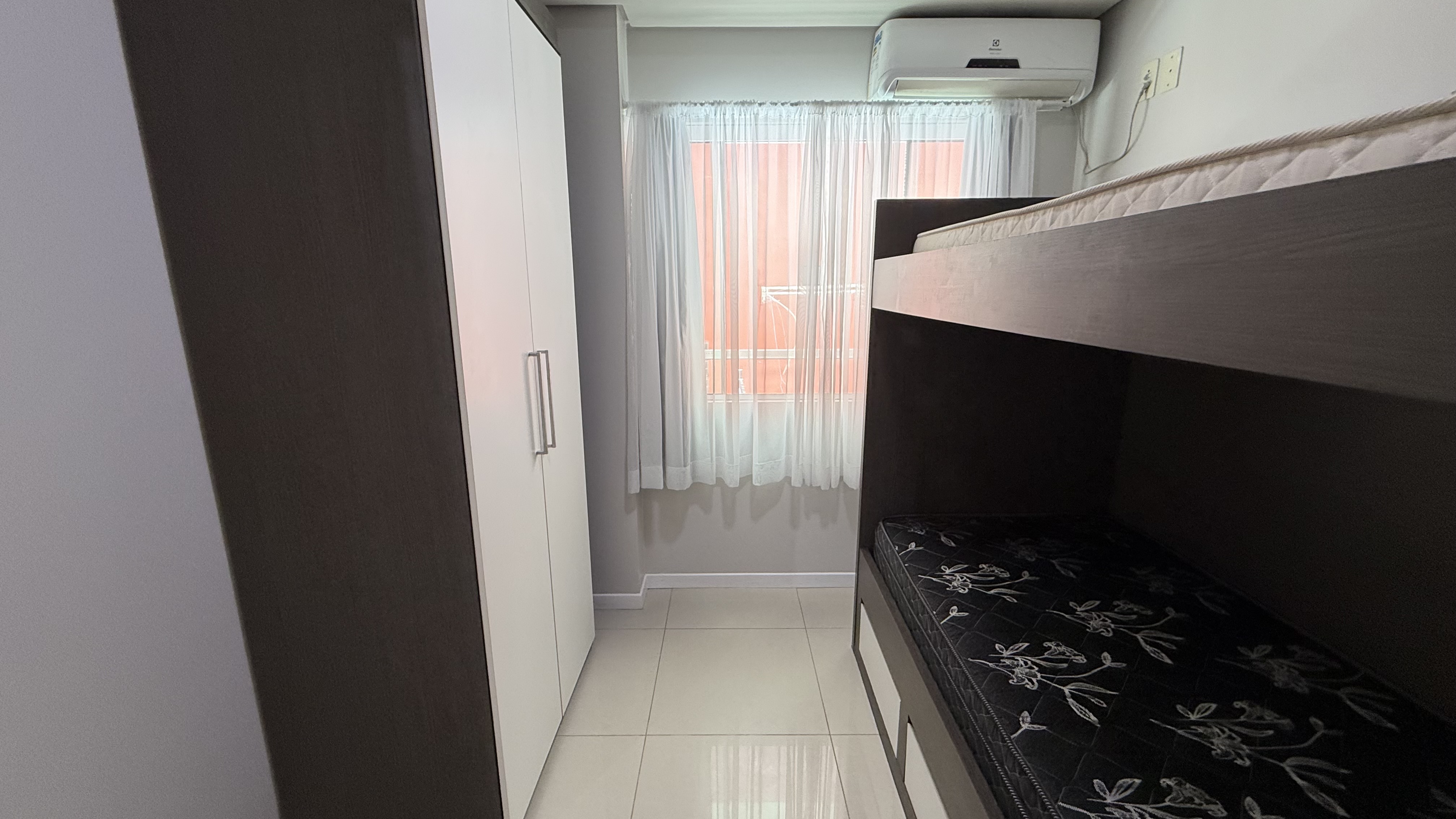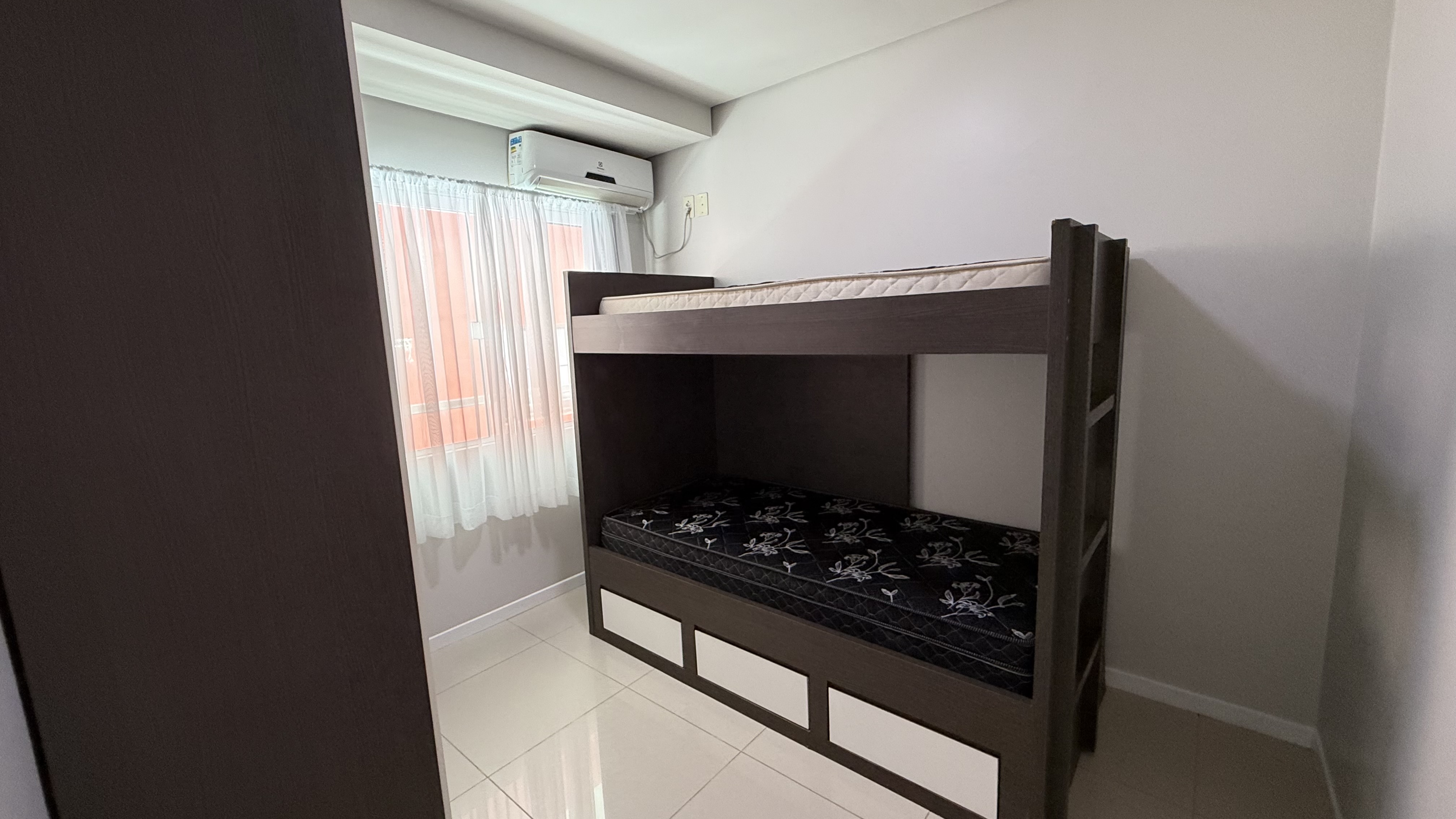 Ref. 182.102 - Prédio com elevador - Apto CENTRAL COM SACADA LATERAL E SEM CHURRASQUEIRA - 2 dormitórios todos climatizados sendo 1 com camas box de casal, e o outro quarto com 1 beliche (2 camas de solteiro), com sacada lateral e sem churrasqueira. 1 vaga de garagem 5m (PICK-UPS SUJEITAS AO TAMANHO E MANOBRAS).