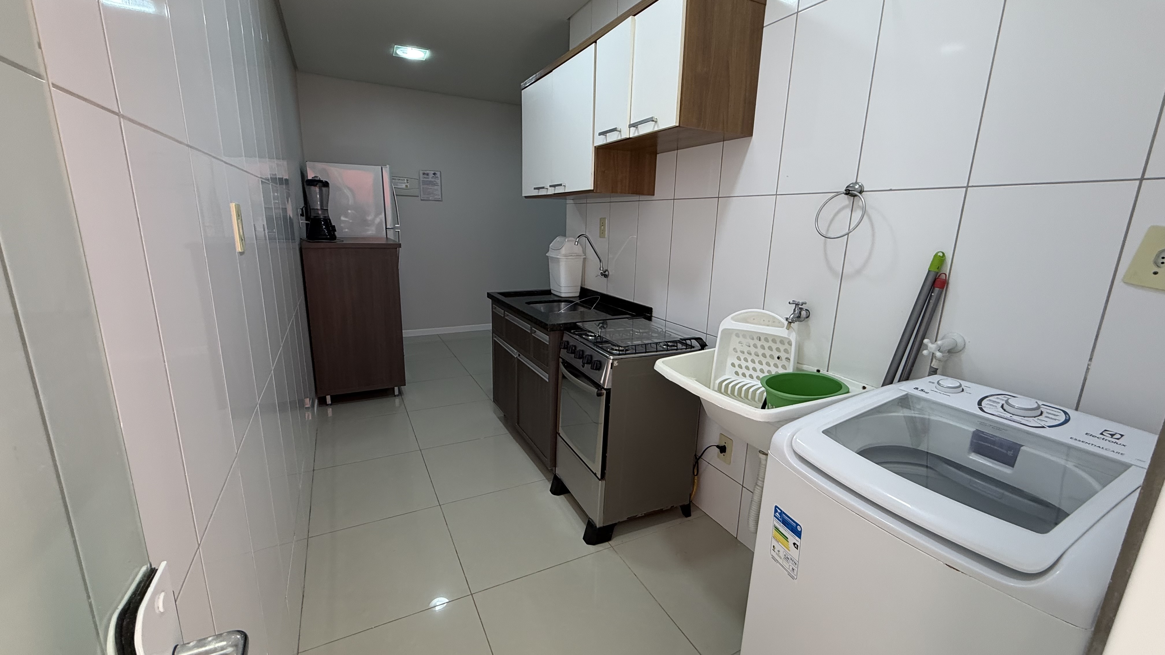 Lavanderia com máquina de lavar roupas;