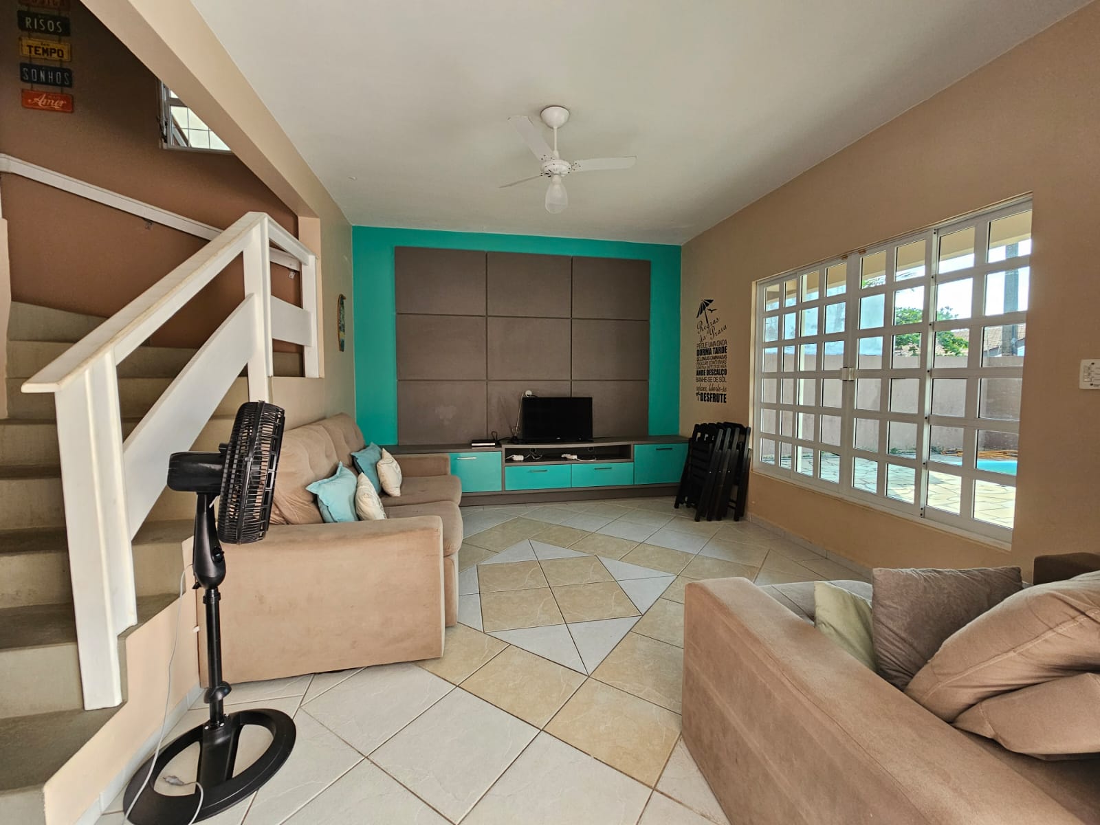 Térreo: 1 quarto, 1 banheiro, sala, cozinha, área de serviço, churrasqueira e piscina 1° andar: 1 suíte + 2 quartos, banheiro social 2° andar: 1 suíte com ampla sacada.